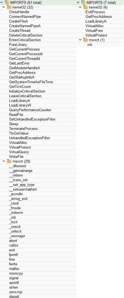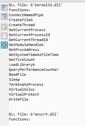 mal = ["CreateToolhelp32Snapshot","EnumDeviceDrivers","EnumProcesses","EnumProcessModules","EnumProcessModulesEx","FindFirstFileA","FindNextFileA","GetLogicalProcessorInformation","GetLogicalProcessorInformationEx","GetModuleBaseNameA","GetSystemDefaultLangId","GetVersionExA","GetWindowsDirectoryA","IsWoW64Process","Module32First","Module32Next","Process32First","Process32Next","ReadProcessMemory","Thread32First","Thread32Next","GetSystemDirectoryA","GetSystemTime","ReadFile","GetComputerNameA","VirtualQueryEx","GetProcessIdOfThread","GetProcessId","GetCurrentThread","GetCurrentThreadId","GetThreadId","GetThreadInformation","GetCurrentProcess","GetCurrentProcessId","SearchPathA","GetFileTime","GetFileAttributesA","LookupPrivilegeValueA","LookupAccountNameA","GetCurrentHwProfileA","GetUserNameA","RegEnumKeyExA","RegEnumValueA","RegQueryInfoKeyA","RegQueryMultipleValuesA","RegQueryValueExA","NtQueryDirectoryFile","NtQueryInformationProcess","NtQuerySystemEnvironmentValueEx","EnumDesktopWindows","EnumWindows","NetShareEnum","NetShareGetInfo","NetShareCheck","GetAdaptersInfo","PathFileExistsA","GetNativeSystemInfo","RtlGetVersion","GetIpNetTable","GetLogicalDrives","GetDriveTypeA","RegEnumKeyA","WNetEnumResourceA","WNetCloseEnum","FindFirstUrlCacheEntryA","FindNextUrlCacheEntryA","WNetAddConnection2A","WNetAddConnectionA","EnumResourceTypesA","EnumResourceTypesExA","GetSystemTimeAsFileTime","GetThreadLocale","EnumSystemLocalesA","CreateFileMappingA","CreateProcessA","CreateRemoteThread","CreateRemoteThreadEx","GetModuleHandleA","GetProcAddress","GetThreadContext","HeapCreate","LoadLibraryA","LoadLibraryExA","LocalAlloc","MapViewOfFile","MapViewOfFile2","MapViewOfFile3","MapViewOfFileEx","OpenThread","Process32First","Process32Next","QueueUserAPC","ReadProcessMemory","ResumeThread","SetProcessDEPPolicy","SetThreadContext","SuspendThread","Thread32First","Thread32Next","Toolhelp32ReadProcessMemory","VirtualAlloc","VirtualAllocEx","VirtualProtect","VirtualProtectEx","WriteProcessMemory","VirtualAllocExNuma","VirtualAlloc2","VirtualAlloc2FromApp","VirtualAllocFromApp","VirtualProtectFromApp","CreateThread","WaitForSingleObject","OpenProcess","OpenFileMappingA","GetProcessHeap","GetProcessHeaps","HeapAlloc","HeapReAlloc","GlobalAlloc","AdjustTokenPrivileges","CreateProcessAsUserA","OpenProcessToken","CreateProcessWithTokenW","NtAdjustPrivilegesToken","NtAllocateVirtualMemory","NtContinue","NtCreateProcess","NtCreateProcessEx","NtCreateSection","NtCreateThread","NtCreateThreadEx","NtCreateUserProcess","NtDuplicateObject","NtMapViewOfSection","NtOpenProcess","NtOpenThread","NtProtectVirtualMemory","NtQueueApcThread","NtQueueApcThreadEx","NtQueueApcThreadEx2","NtReadVirtualMemory","NtResumeThread","NtUnmapViewOfSection","NtWaitForMultipleObjects","NtWaitForSingleObject","NtWriteVirtualMemory","RtlCreateHeap","LdrLoadDll","RtlMoveMemory","RtlCopyMemory","SetPropA","WaitForSingleObjectEx","WaitForMultipleObjects","WaitForMultipleObjectsEx","KeInsertQueueApc","Wow64SetThreadContext","NtSuspendProcess","NtResumeProcess","DuplicateToken","NtReadVirtualMemoryEx","CreateProcessInternal","EnumSystemLocalesA","UuidFromStringA",