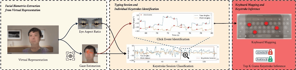 Il cuore dell’attacco GAZEploit risiede nella capacità di tracciare i movimenti oculari dell’utente. Questi movimenti, replicati dall’avatar digitale dell’utente durante una videochiamata, possono essere utilizzati per ricostruire il testo inserito sulla tastiera virtuale. Nonostante visionOS offra tre diverse tastiere (una per i PIN, una QWERTY e una per numeri e caratteri speciali), gli attaccanti possono analizzare i pattern visivi durante la digitazione e decifrare i caratteri digitati grazie a reti neurali.