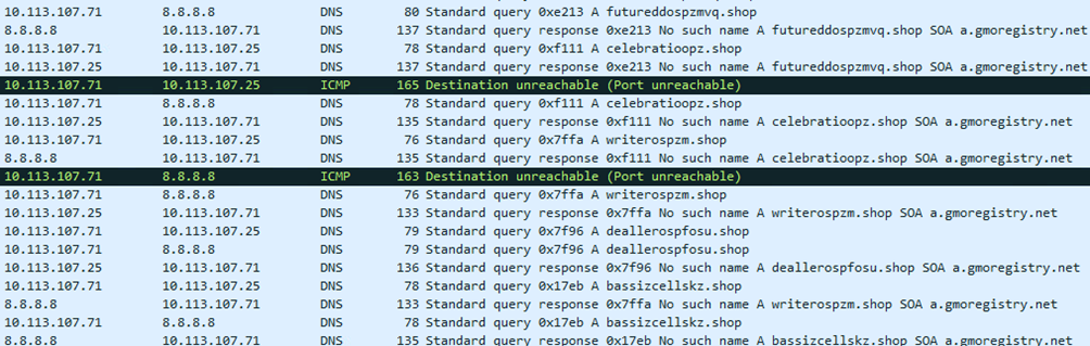 Dopo aver raccolto le informazioni, avviene la comunicazione con i server di command and control (C2) per esfiltrare i dati rubati. Il malware tenta di connettersi a domini C2 con estensione di dominio di primo livello (TLD) “.shop“.