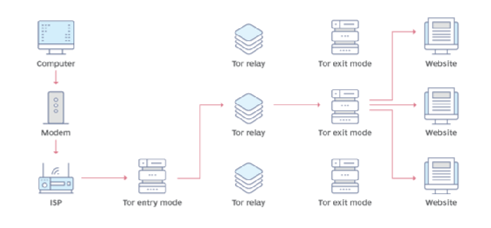Tor è il browser principale per accedere al dark web. Utilizzando Tor, le comunicazioni online vengono instradate attraverso una rete di server che partecipano volontariamente al progetto e che sono sparsi in tutto il mondo. Questi dispositivi sono anche chiamati “nodi” o “relay” e compongono una rete di tunnel dentro ai quali la connessione viene rimbalzata. Questo processo, detto “routing a cipolla”, cripta i dati a ogni passaggio, rendendo estremamente difficile tracciare l’origine delle informazioni.