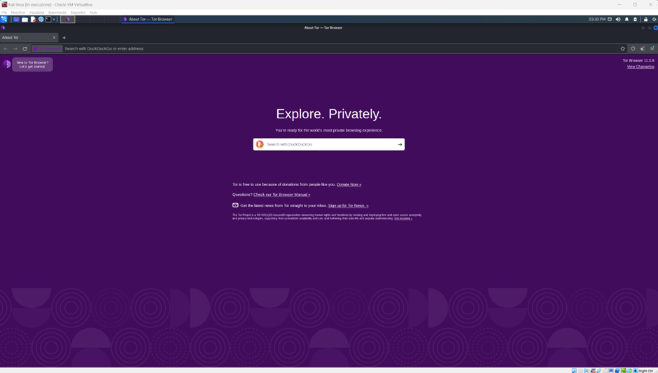 Ci siamo, cosa aspetti? Esegui la VPN, avvia la VM, esegui Tor e addentrati nel Dark Web!