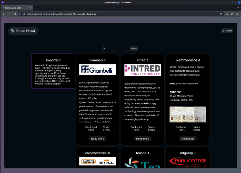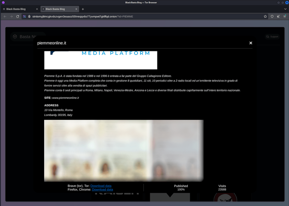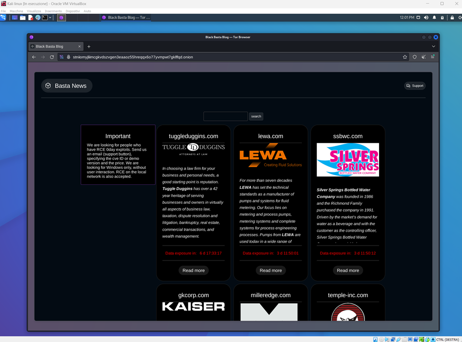 In questo esempio, andiamo ad accedere mediante Tor al dominio .onion del gruppo BlackBasta, uno dei più Threat Actor più sofisticati e organizzati in circolazione.