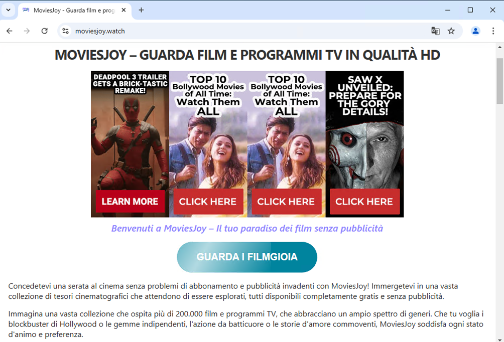 L’indagine ha rivelato un modello di business fraudolento collegato a una piattaforma di streaming di film gratuiti, che carica annunci pubblicitari in modo “nascosto”. Questo modello si basa su siti intermediari, noti come “money site“, che, pur apparendo come blog o portali di notizie legittimi, sono progettati esclusivamente per monetizzare il traffico proveniente da piattaforme di streaming pirata.