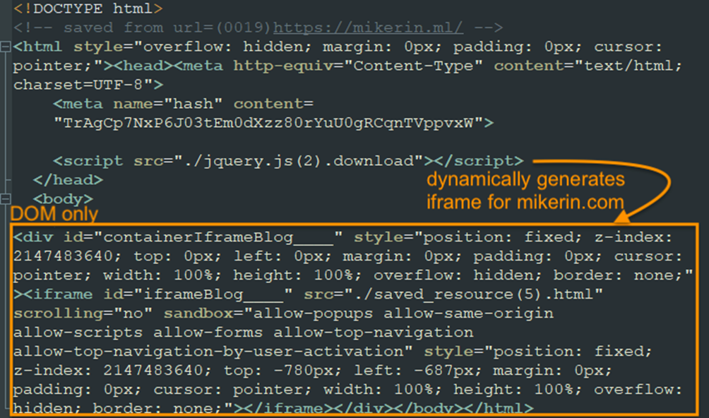 Per attivare questo traffico, i “money site” vengono caricati all’interno di iframe invisibili nelle pagine dei siti pirata. Un iframe (abbreviazione di “inline frame”) è un elemento HTML che consente di incorporare all’interno di una pagina web un’altra pagina web o contenuto esterno, come un documento o un video, in una “finestra” indipendente. Così, quando un utente visita il sito di streaming pirata, genera inconsapevolmente traffico verso i “money site”, attivando il codice illecito poiché la fonte del traffico proviene dal sito pirata. Gli annunci vengono quindi registrati come visualizzati o cliccati grazie al codice che replica il comportamento umano.