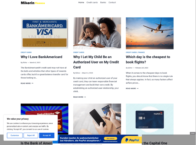I “money site” sono generalmente costruiti su WordPress e ospitano articoli e annunci pubblicitari. Alcuni di questi articoli contengono codice illecito che si attiva solo quando il traffico proviene da un sito pirata come moviesjoy.