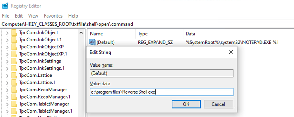 Gli attaccanti possono sfruttare le associazioni di file per ottenere persistenza sul sistema, modificando l’applicazione predefinita associata a un tipo di file in modo da eseguire il proprio malware. Ad esempio, un attaccante potrebbe cambiare l’associazione per i file .txt, configurando il sistema affinché, invece di aprirli con Blocco note, lanci un programma che stabilisce una Reverse Shell collegata a un server di comando e controllo (C2). In questo modo, ogni volta che l’utente tenta di aprire un file .txt, viene avviata una connessione remota per consentire all’attaccante di controllare il sistema.