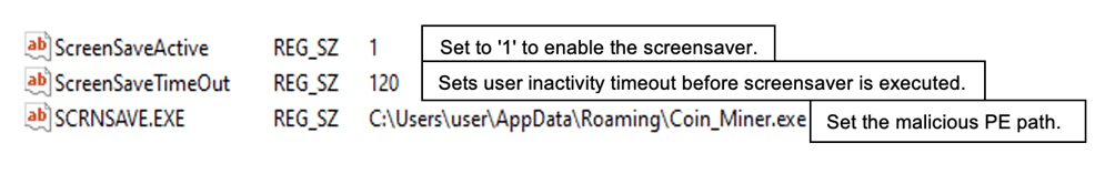Ad esempio, un attaccante potrebbe modificare queste impostazioni per avviare un programma di crypto mining ogni volta che il computer rimane inattivo per due minuti. In questo modo, l’attaccante sfrutta le risorse del sistema per minare criptovalute in modo nascosto durante i periodi di inattività. Appena l’utente riprende l’uso del computer, il crypto miner, mascherato da screensaver, si interrompe automaticamente, rendendo difficile il rilevamento senza un monitoraggio specifico dei processi attivi.