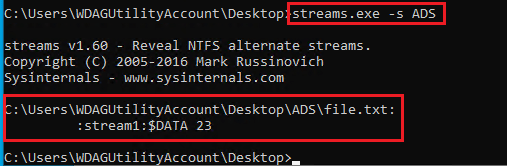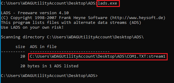 Come accennato in precedenza, la tecnica di nascondere i dati tramite ADS è ben nota, e strumenti come Windows Defender e diversi antivirus moderni sono già in grado di rilevare e mappare questi flussi. Tuttavia, un amministratore di sistema o un analista forense può individuare gli ADS utilizzando strumenti specifici e comandi mirati.