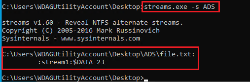 Come accennato in precedenza, la tecnica di nascondere i dati tramite ADS è ben nota, e strumenti come Windows Defender e diversi antivirus moderni sono già in grado di rilevare e mappare questi flussi. Tuttavia, un amministratore di sistema o un analista forense può individuare gli ADS utilizzando strumenti specifici e comandi mirati.