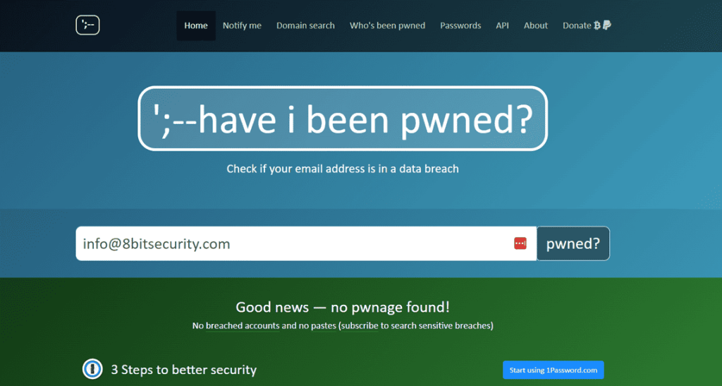 Come suggerisce il nome, si tratta di una verifica tanto semplice quanto efficace: tutto ciò che devi fare è navigare al sito Have I Been Pwned.