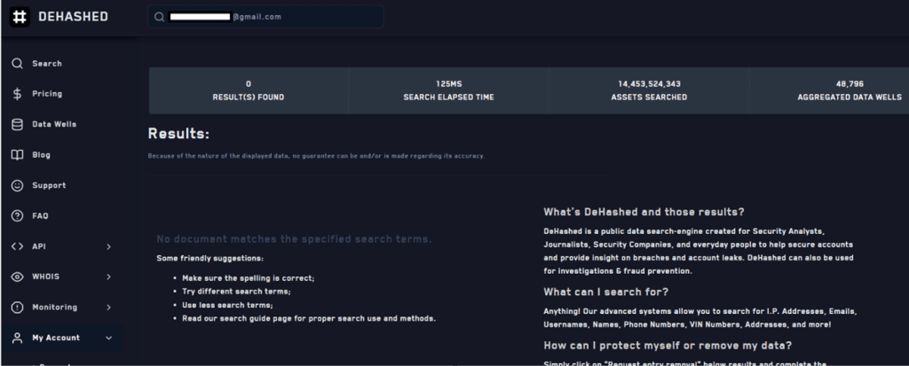 Altrettanto valido anche se meno completo rispetto al rivale, DeHashed è un portale molto simile, che puoi affiancare ai precedenti per un’indagine il più completa possibile.