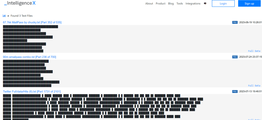 Uno dei portali più completi del settore è Intelligence X, piattaforma che si occupa di raccogliere dump e leakage, similmente ad HaveIBeenPwned, per fornire un servizio di ricerca e verifica di credenziali proprie e aziendali.