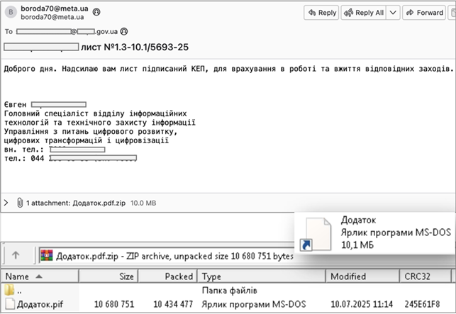 - Infezione iniziale: LameHug è stato diffuso tramite email di spear-phishing, spesso camuffate da comunicazioni governative. Gli allegati erano file ZIP contenenti eseguibili compilati con PyInstaller, mascherati come .pif o .exe. Sono stati osservati file come Attachment.pif e AI_generator_uncensored_Canvas_PRO_v0.9.exe.