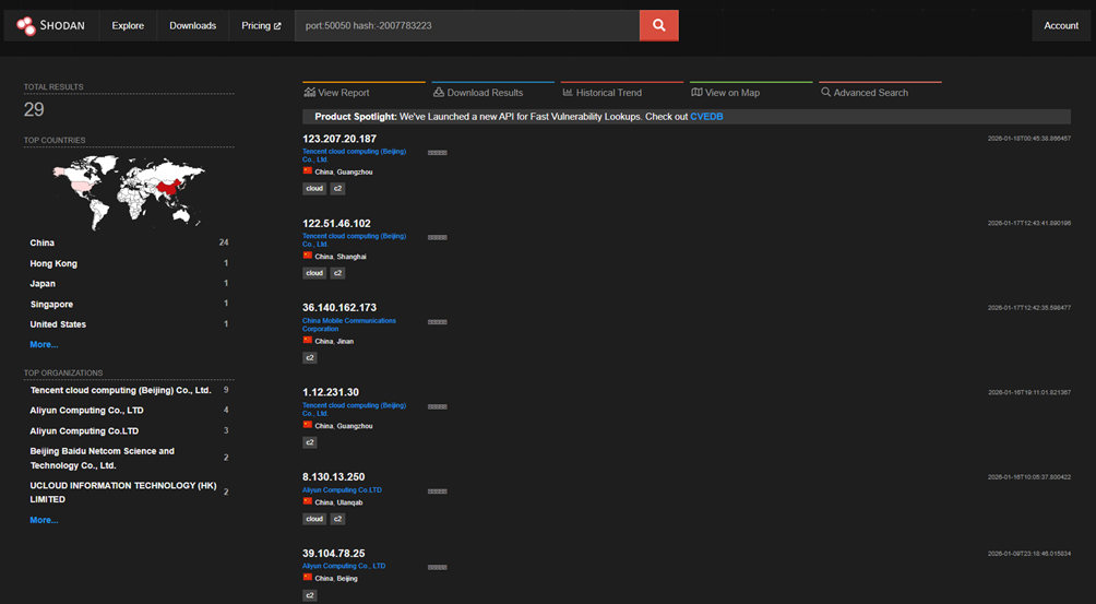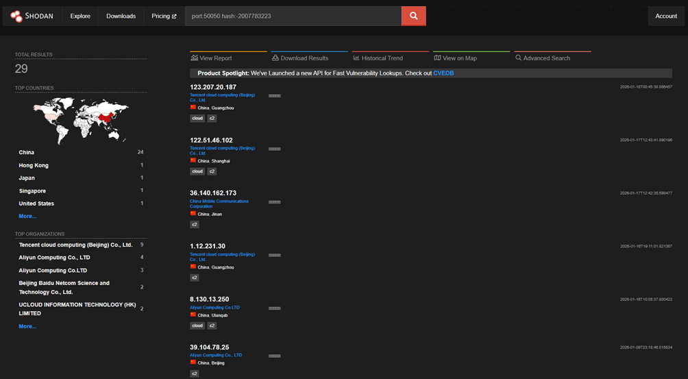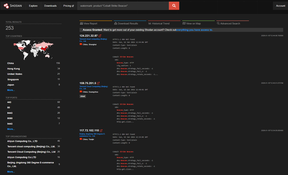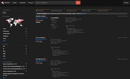 Al momento della stesura, Shodan identifica oltre 250 server Cobalt Strike attivi, Cina, Hong Kong e Stati Uniti, tra i Paesi maggiormente coinvolti: