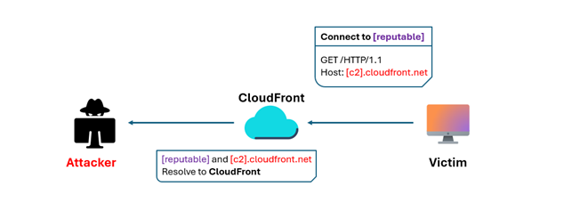 Nella sua forma più semplice, un redirector può essere costituito da una semplice istanza cloud che esegue un reverse proxy, ad esempio tramite nginx. Una variante più sofisticata ed efficace è rappresentata dal domain fronting. Questa tecnica consente di nascondere la reale destinazione di una connessione instradando il traffico attraverso l’infrastruttura di una Content Delivery Network (CDN). Inizialmente documentata come metodo per aggirare la censura su Internet, è stata successivamente adottata da diversi threat actor, tra cui APT29, per mascherare le comunicazioni di command and control.