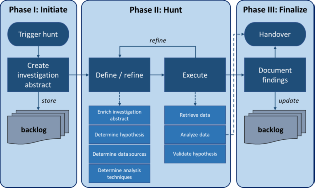 TaHiTI distingue cinque processi che possono essere attivati come risultato delle indagini di Threat Hunting: